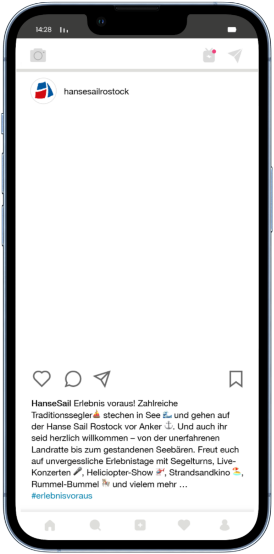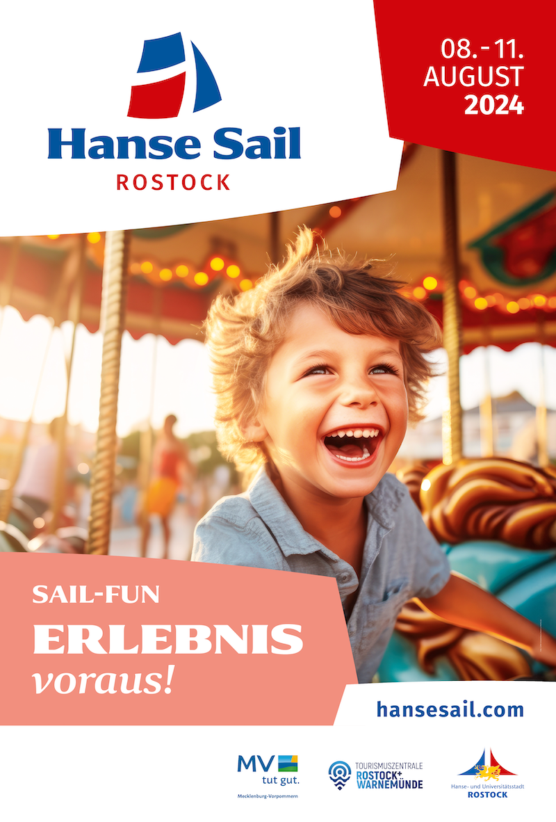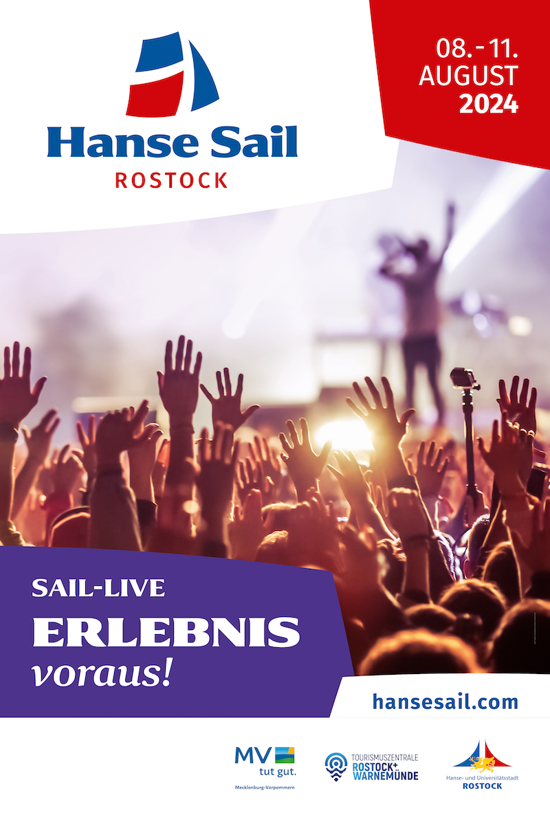 Mit dem Markenclaim »Erlebnis voraus« positioniert sich die Hanse Sail Rostock als maritime Erlebnismarke. Das breitgefächerte Angebot verteilt sich zielgruppenrelevant in drei Erlebnisbereiche: