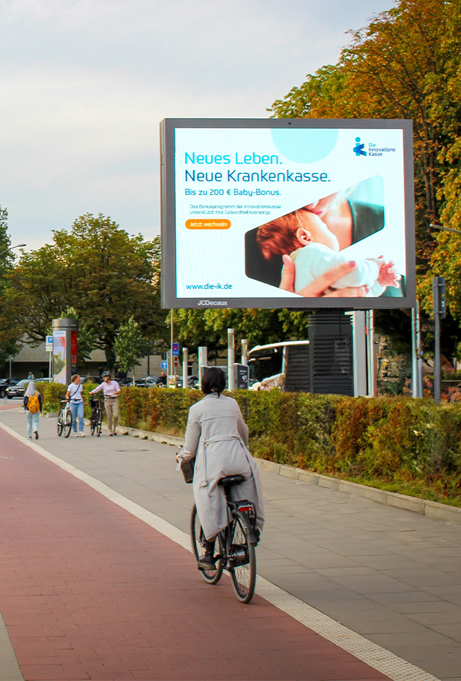 Auftrag Von regional zu national. Von IKK Nord zu IKK – Die Innovationskasse. Wir unterstützten die Neuausrichtung der Krankenkasse mit der Entwicklung eines neuen, prägenden Markenauftritts. Das neue Logo schärft die moderne Positionierung des Gesundheitspartners und macht deutlich, dass der Mensch bei der IK weiterhin im Mittelpunkt steht. Die bundesweite Jungfernfahrt mit der Out-of-Home-Kampagne war sehr erfolgreich und holte zahlreiche Neumitglieder an Bord.