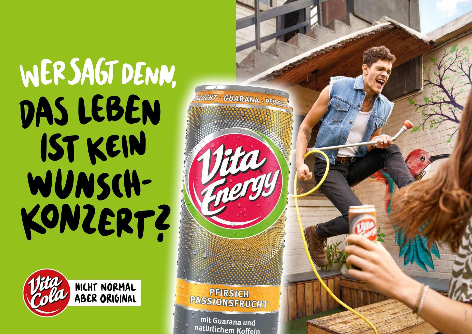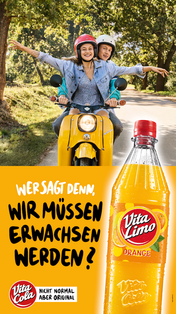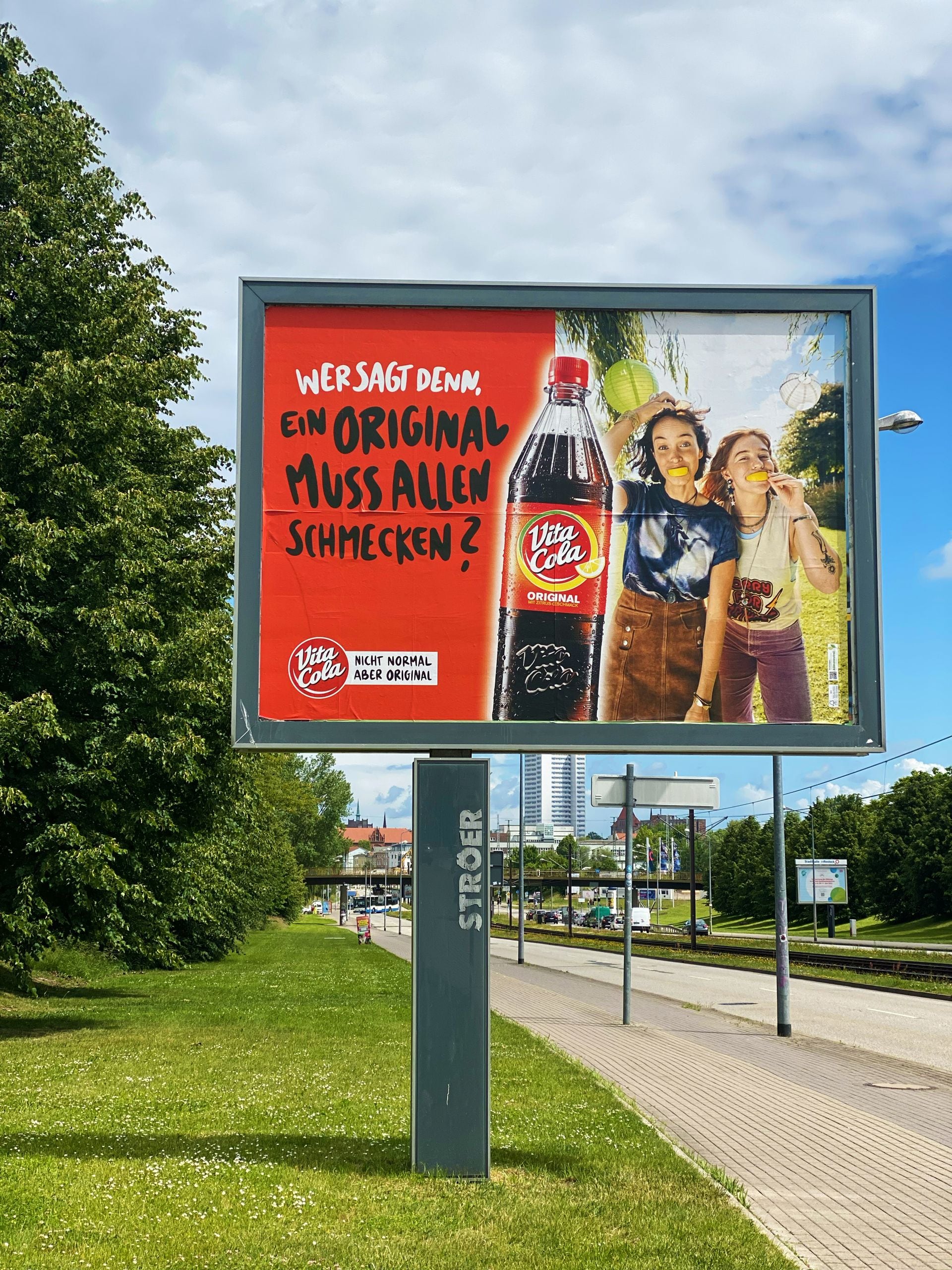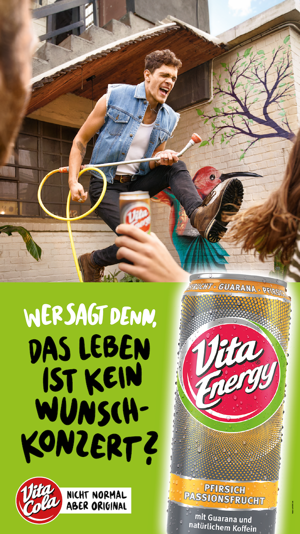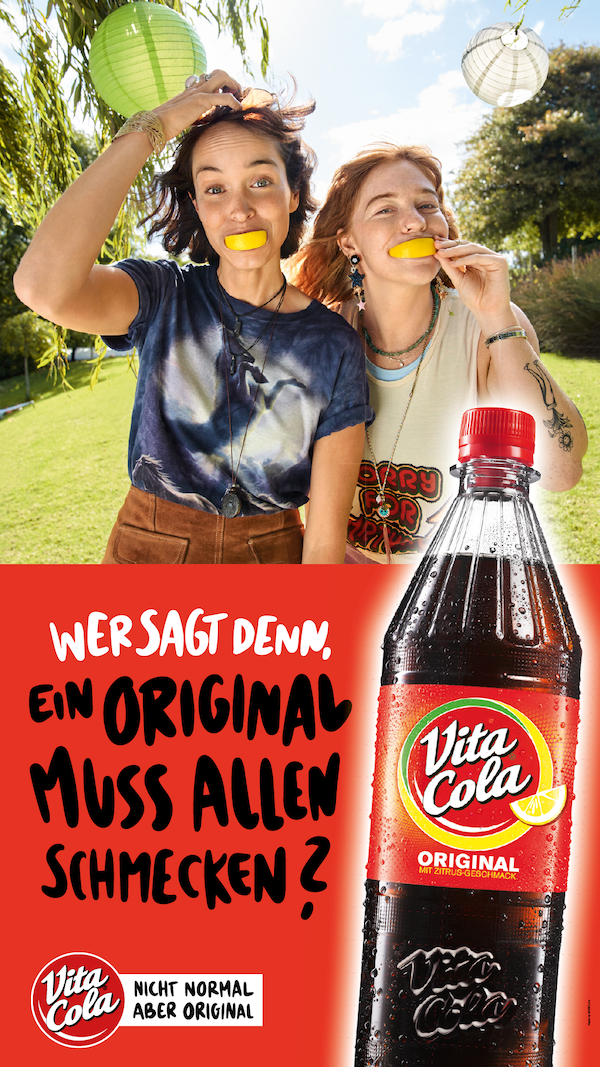 VITA COLA ist die erfolgreichste, deutsche Softdrink-Marke und besonders bei älteren Verwendern in aller Munde. Das Markenprofil als erfrischend andere Cola soll weiter geschärft und auch trendbewusste Menschen auf den Geschmack gebracht werden. WERK3 entwickelt eine Kampagne, die junge Erwachsene inspiriert, ihren eigenen Weg zu gehen und sich auszuprobieren – auch bei der Wahl ihrer Lieblingscola. Wir begleiten die Vertriebsbestrebung Absatzmarkt West.