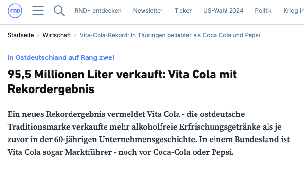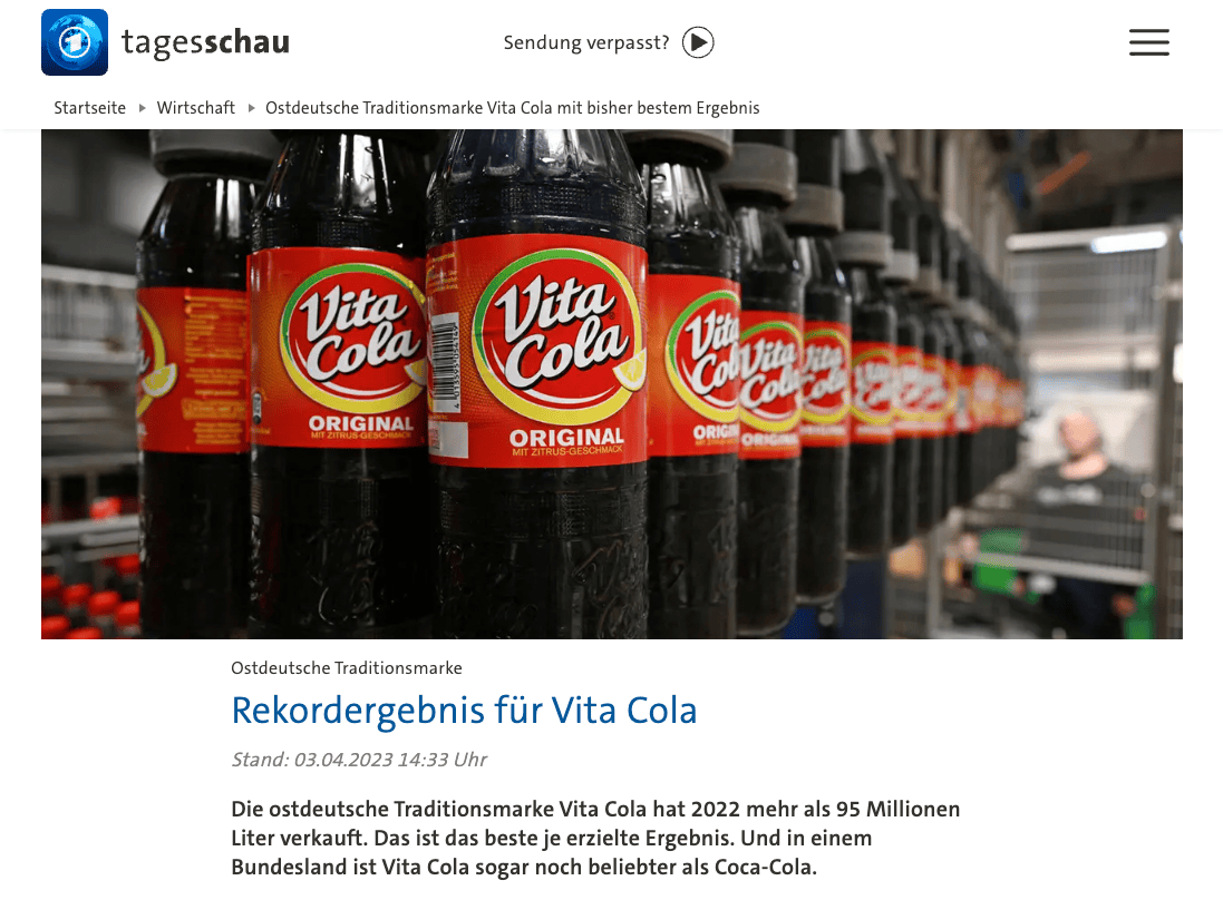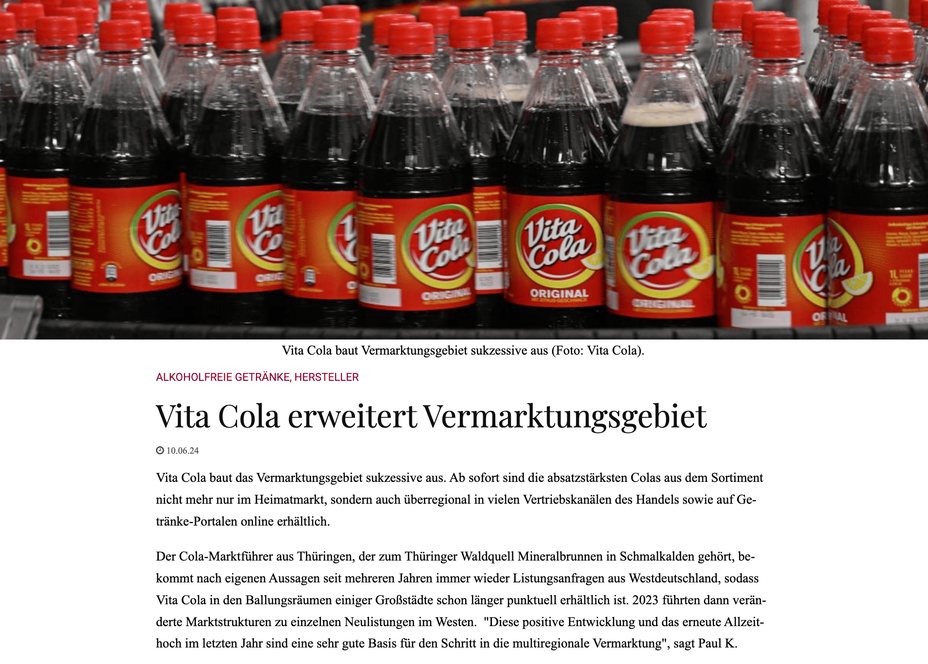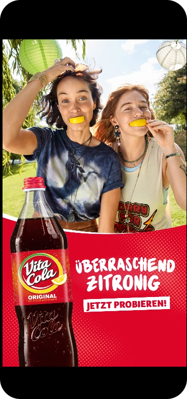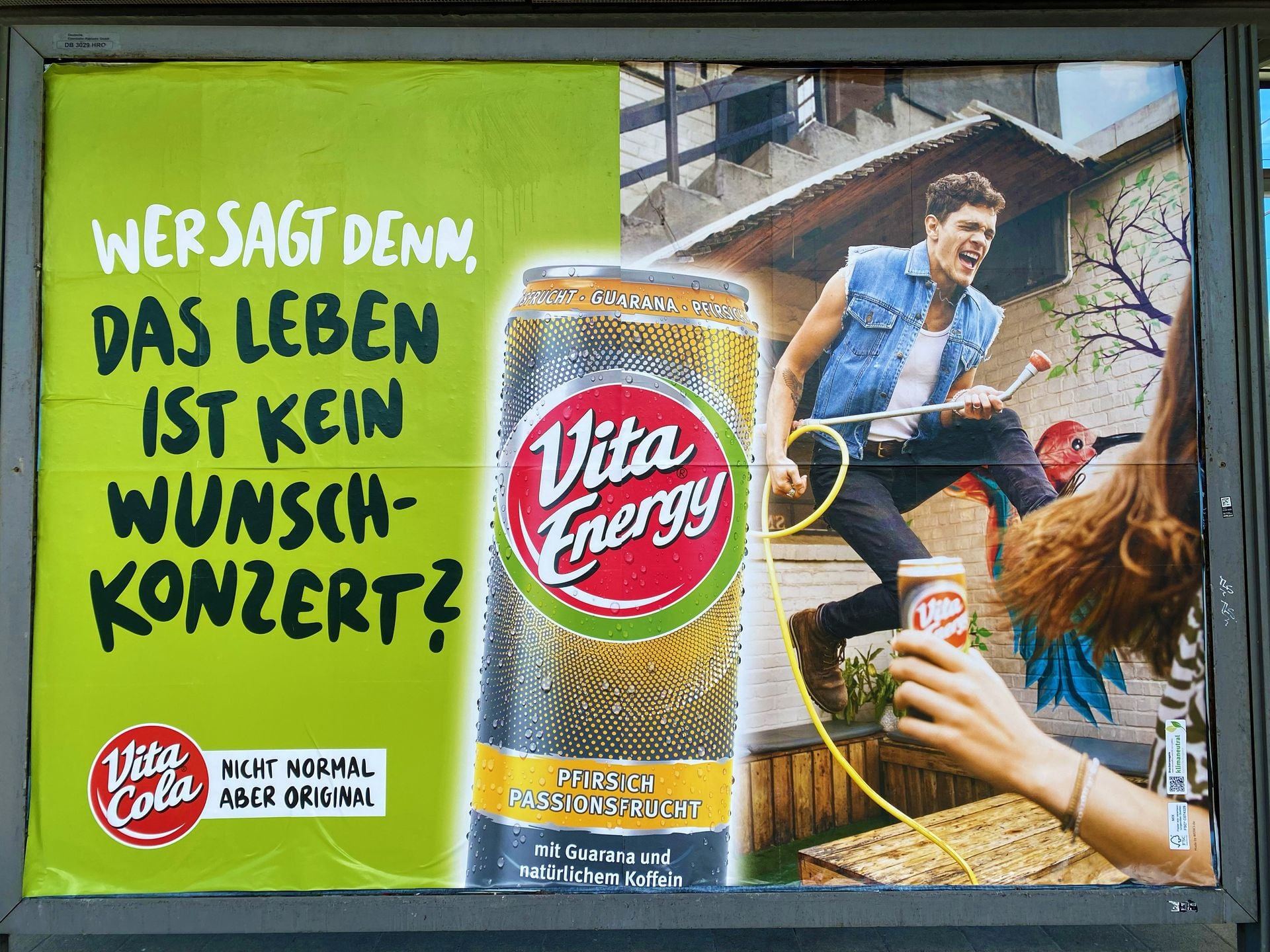 VITA COLA ist die erfolgreichste, deutsche Softdrink-Marke und besonders bei älteren Verwendern in aller Munde. Das Markenprofil als erfrischend andere Cola soll weiter geschärft und auch trendbewusste Menschen auf den Geschmack gebracht werden. WERK3 entwickelt eine Kampagne, die junge Erwachsene inspiriert, ihren eigenen Weg zu gehen und sich auszuprobieren – auch bei der Wahl ihrer Lieblingscola. Wir begleiten die Vertriebsbestrebung Absatzmarkt West.